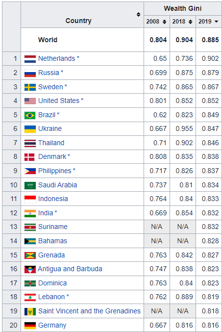 Maybe in comparison to the average of Europe, but not in comparison to Germany, Netherlands… Denmark and… Sweden? There is also Russia, Brazil and India. It’s hard to tell what all these countries with the highest wealth inequality have in common.
