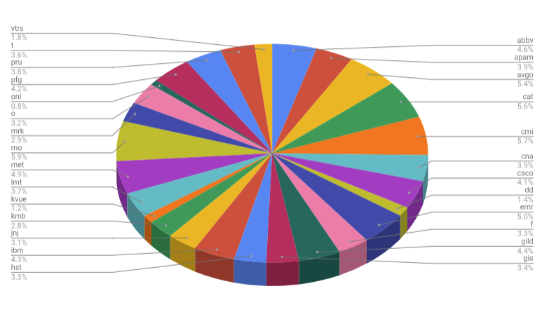 As an example here are my actual allocations for the dividend and the momentum strategies (Labels are the U.S. stock symbols)… and please, don’t do this at home :
