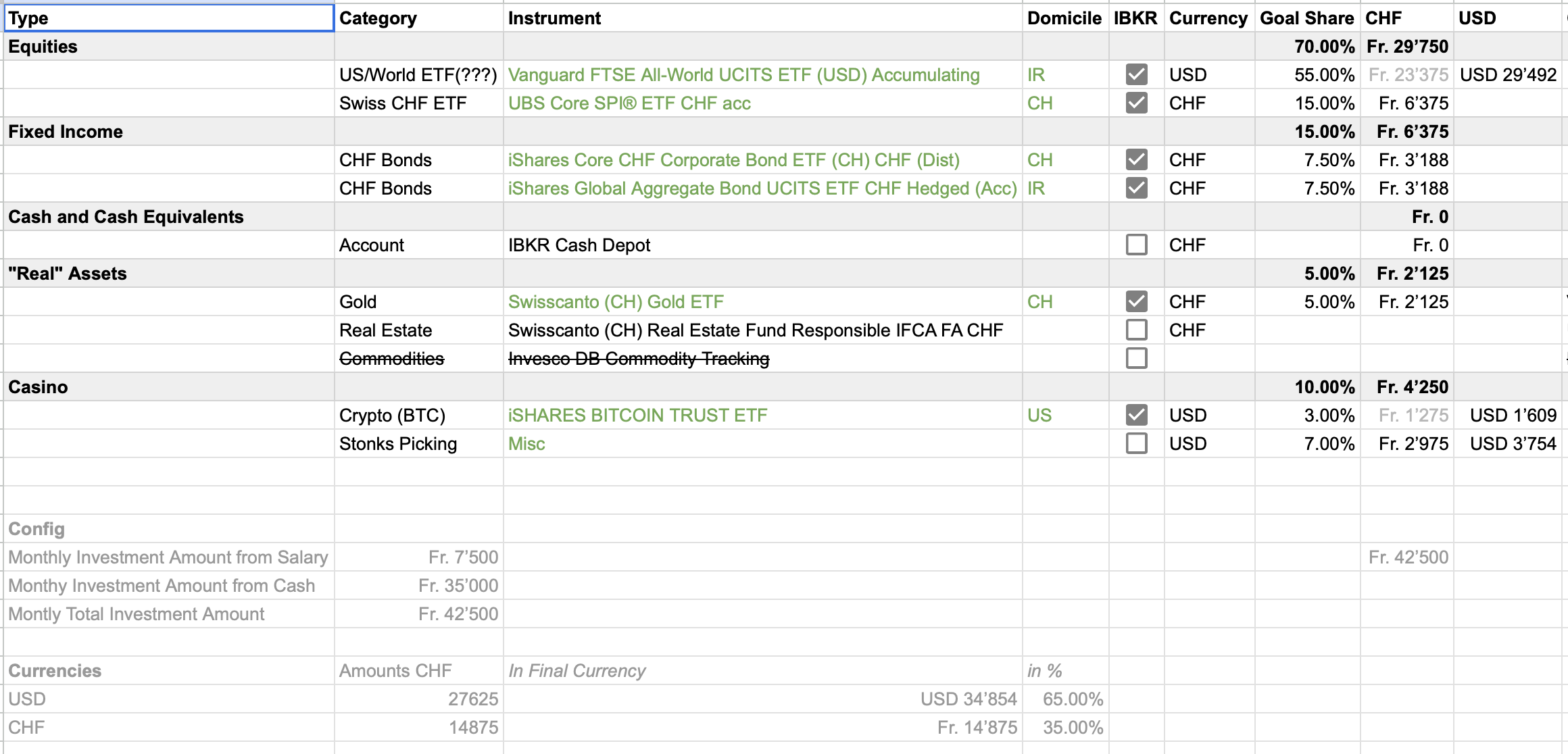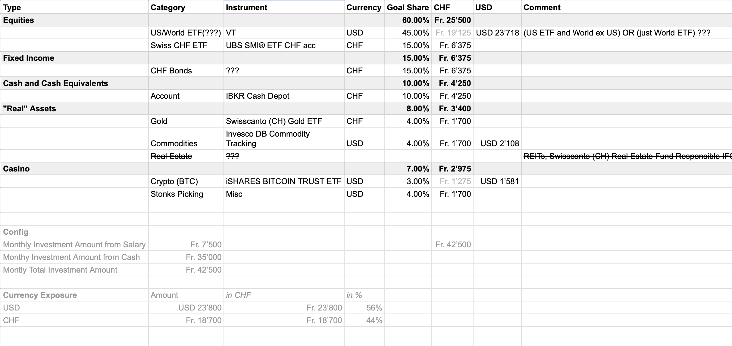 Your currency exposure section doesn’t make sense to me at all. Neither is VT 100% exposed to USD, nor is SMI 100% exposed to CHF (far from it). Similar for other positions.