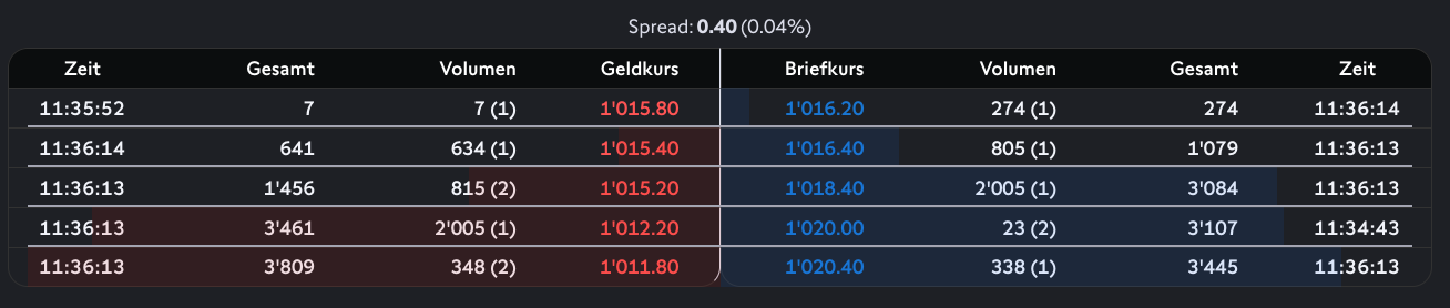 That would indeed be a large spread but I currently see a spread of 0.04% for ZGLD up to CHF 7k and 0.08% up to CHF 278k. If you’re checking SIX at IBKR, you may not have the full market data.