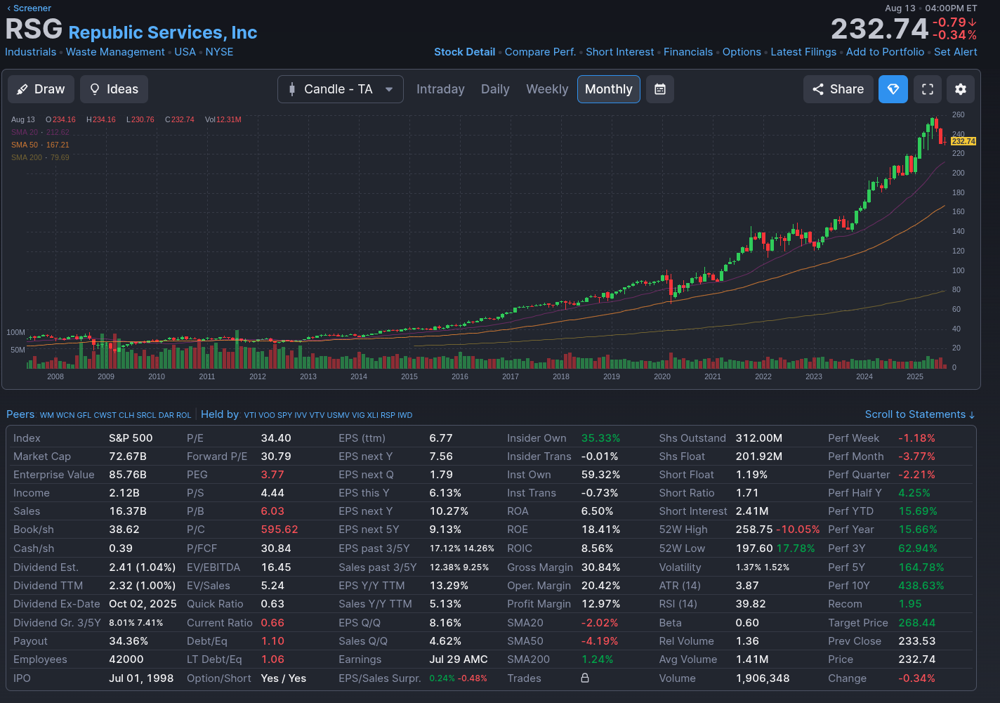 | RSG | Republic Services | United States | Waste services (inflation-linked pricing) |
