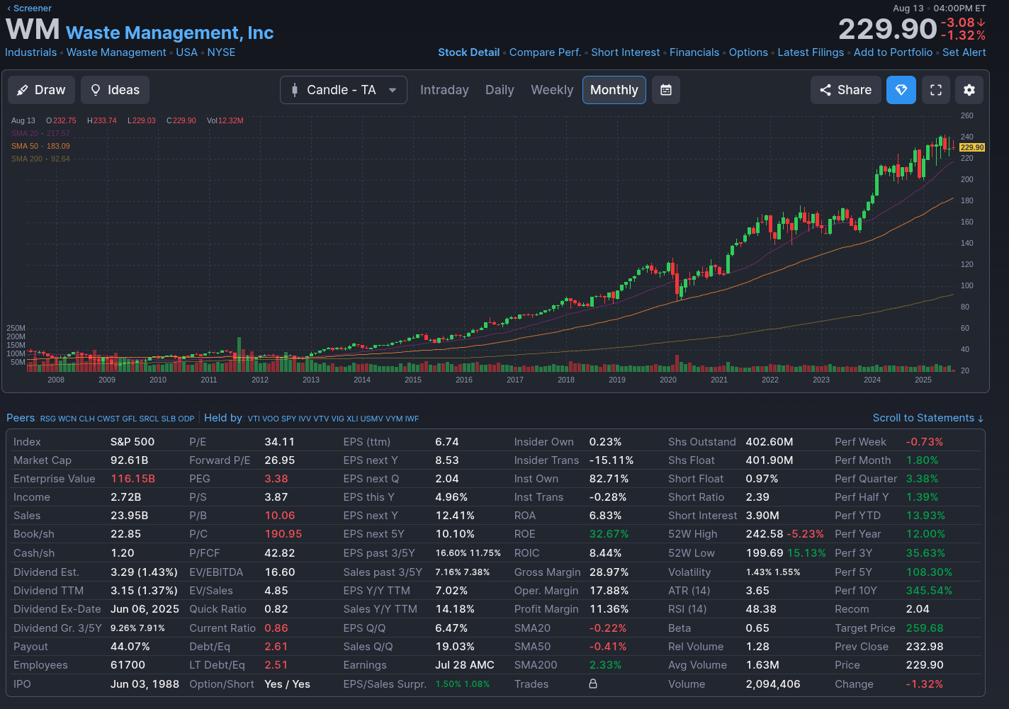 What is it with waste management companies? I thought of adding some to my portfolio and it seems I’m very late to this party: