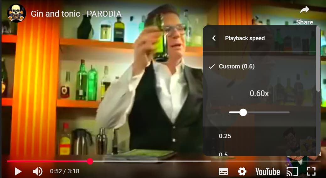Goofy sets the playback speed to 0.6 and chuckles along watching the video, only half understanding what he is chuckling about.