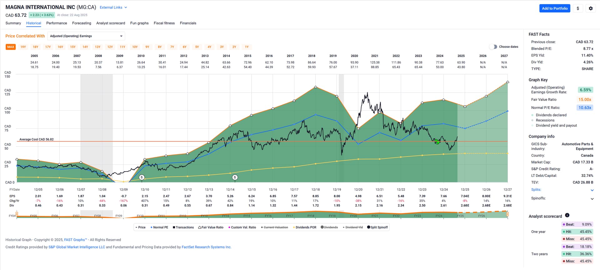 Chickened out on adding to Magna International, mainly because I hate buying when a stock price rips on the day I want to buy:
