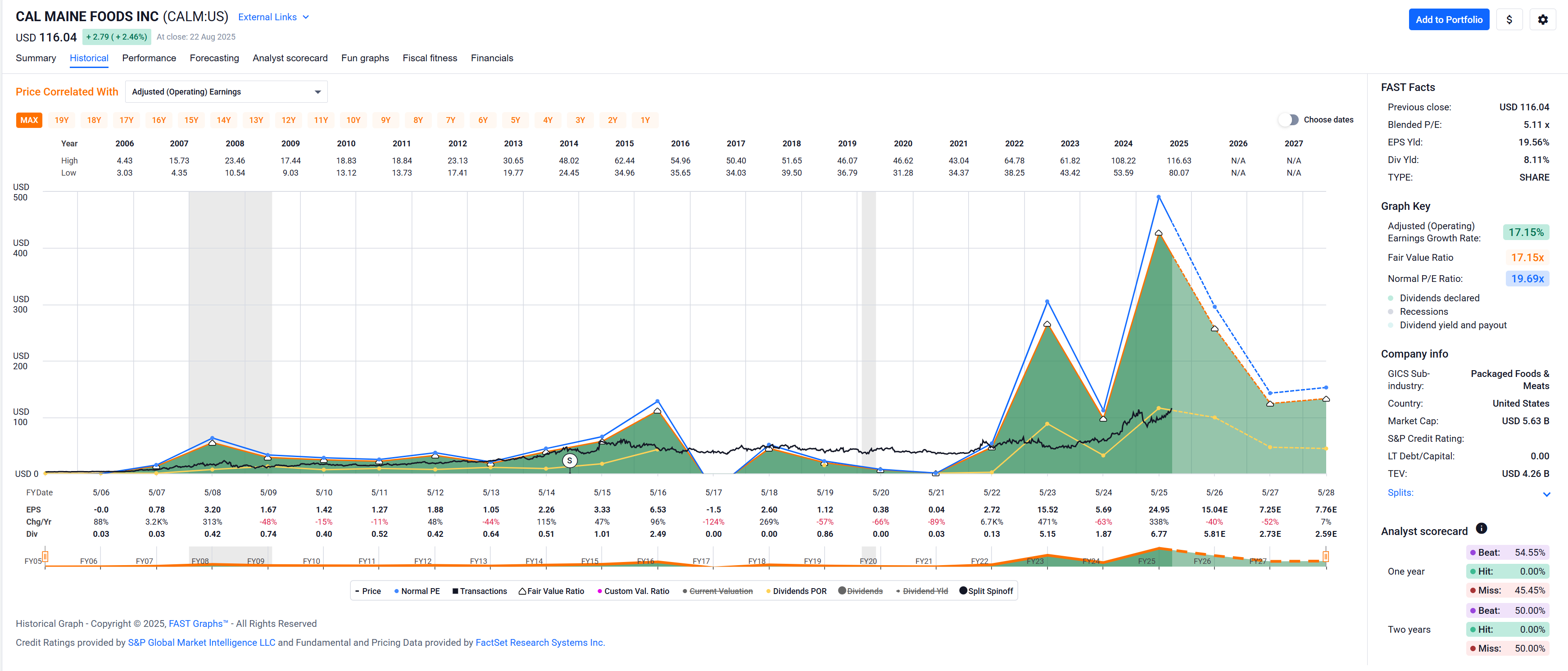 Egg prices have been volatile so when the price drops the share price will follow. Now that CALM is no longer family controlled, maybe they’ll be taken over. I think it is only remaining large publicly-listed egg producer in the US.