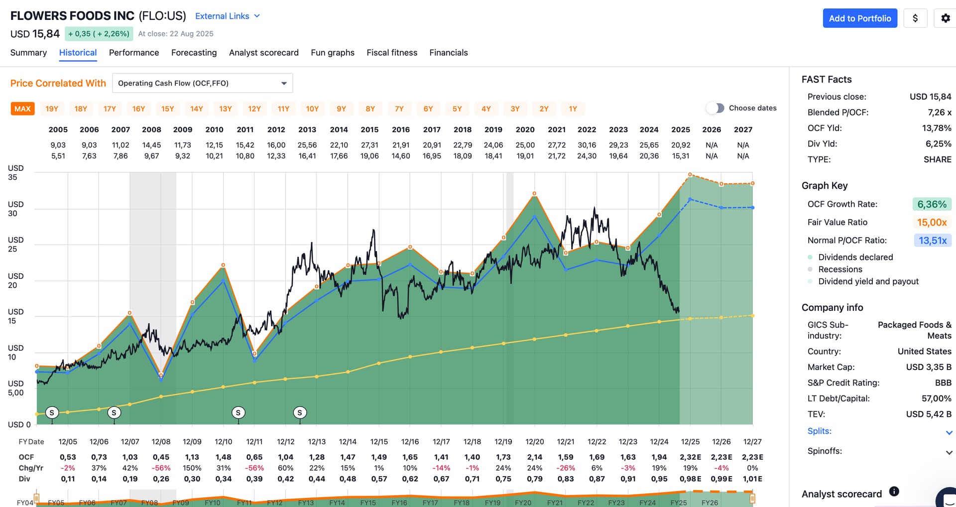 Always looking around for some interesting dividend stocks for my mechanical system. Any opinion on flowers food? That would be my target if I would need to buy something now.