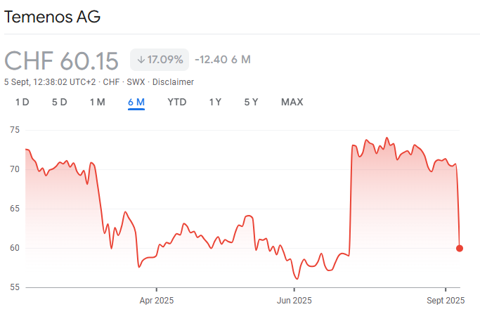 Temenos CEO ousted, vaguely similar to Nestlé but without the surrounding additional issues, I hope. Anyone buy the dip?