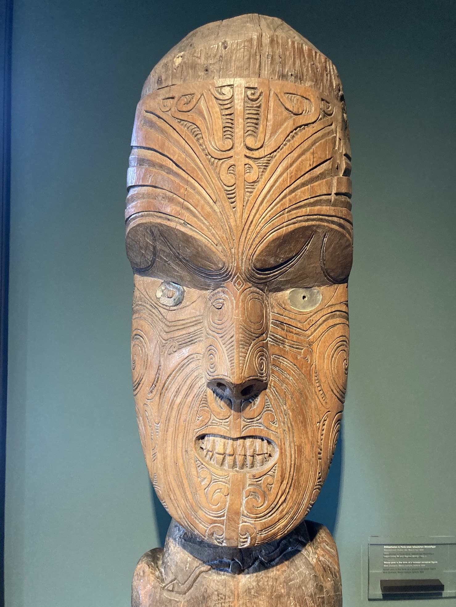 Head of a house post (about 2 yards tall) in the form of a tattooed ancestral figure, Oceania, late 19th century or early 20 century IIRC.Zurich, Museum Rietberg