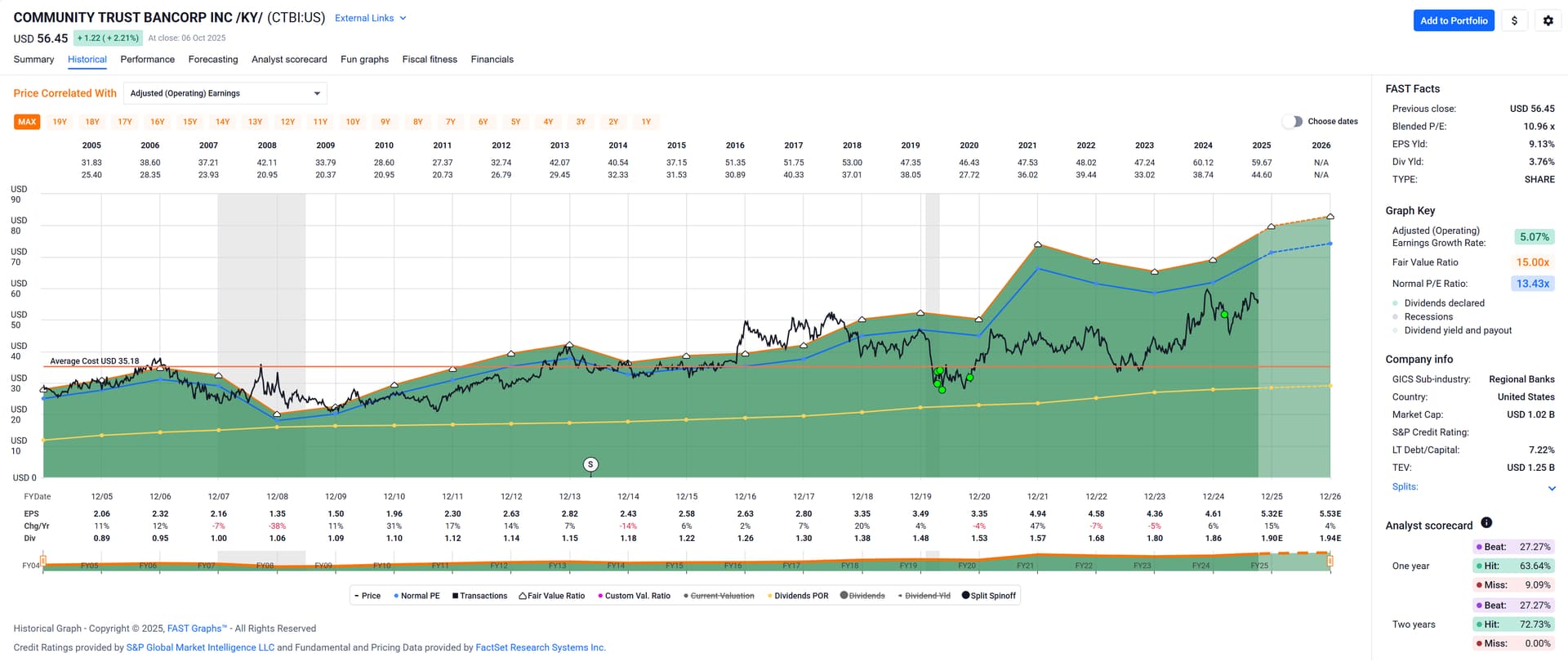 1 CTBI: Community Trust Bancorp, regional bank with an USD 1B market cap.