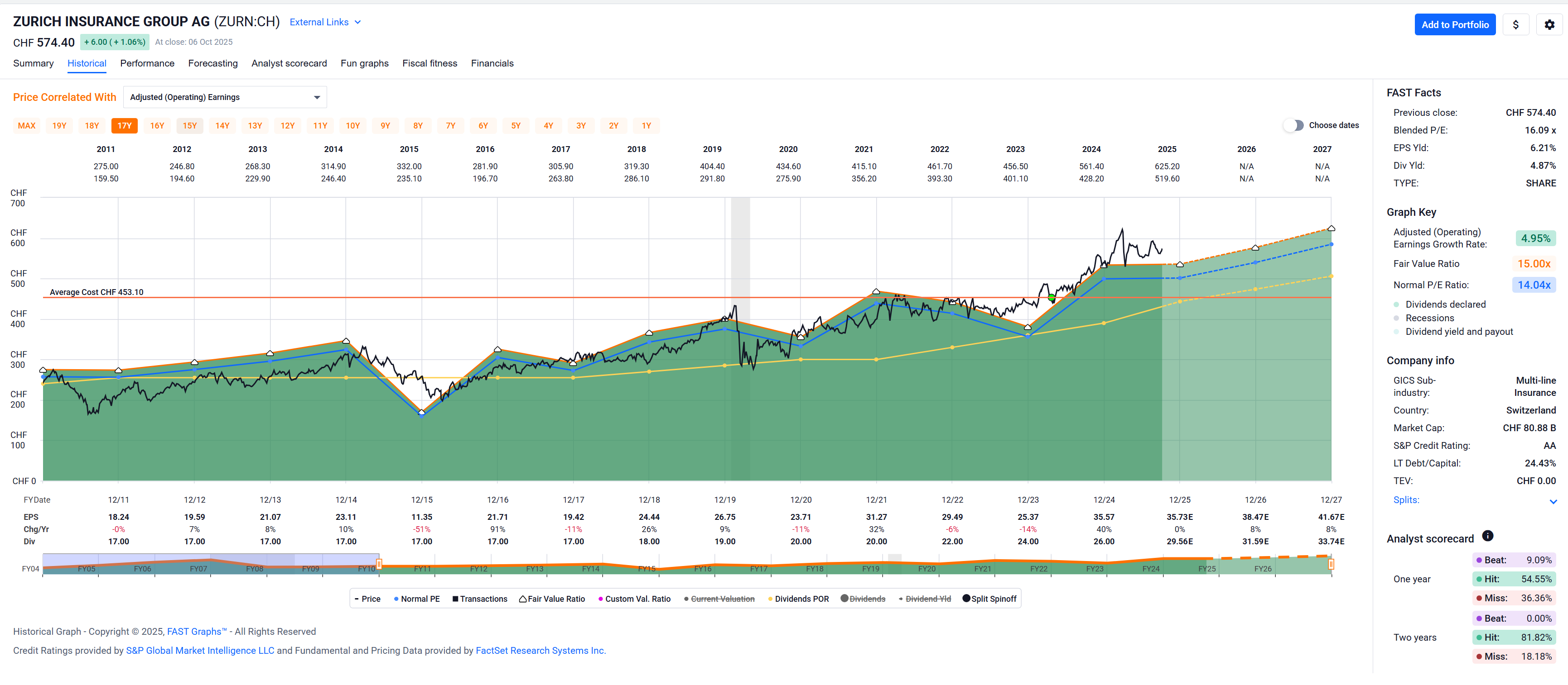 ZURN: Reliable albeit somewhat slow grower (since the GFC). Only slightly overvalued.[§§]