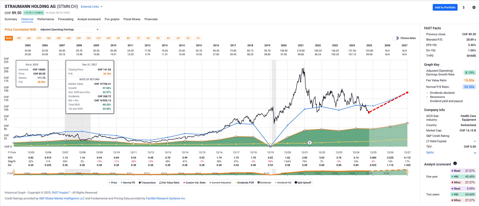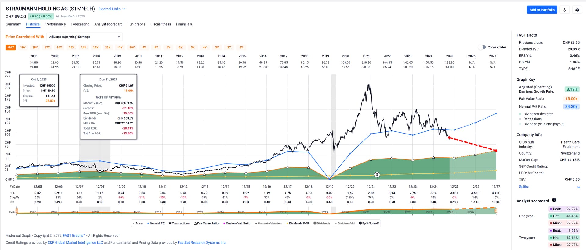 For Geberit and Straumann: both viable businesses, able to continually grow their earnings, but chronically overvalued. Probably more my personal flaw, but I just cannot bring myself to buying an over-priced company.