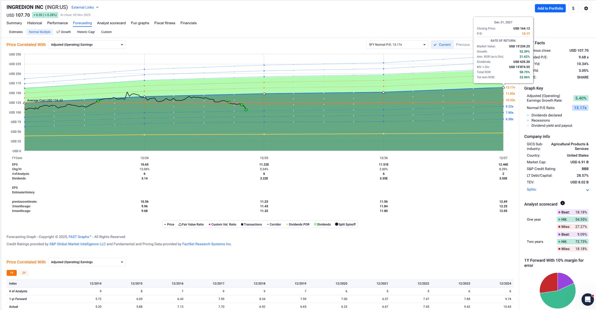 Bought another slice of Ingredion today.