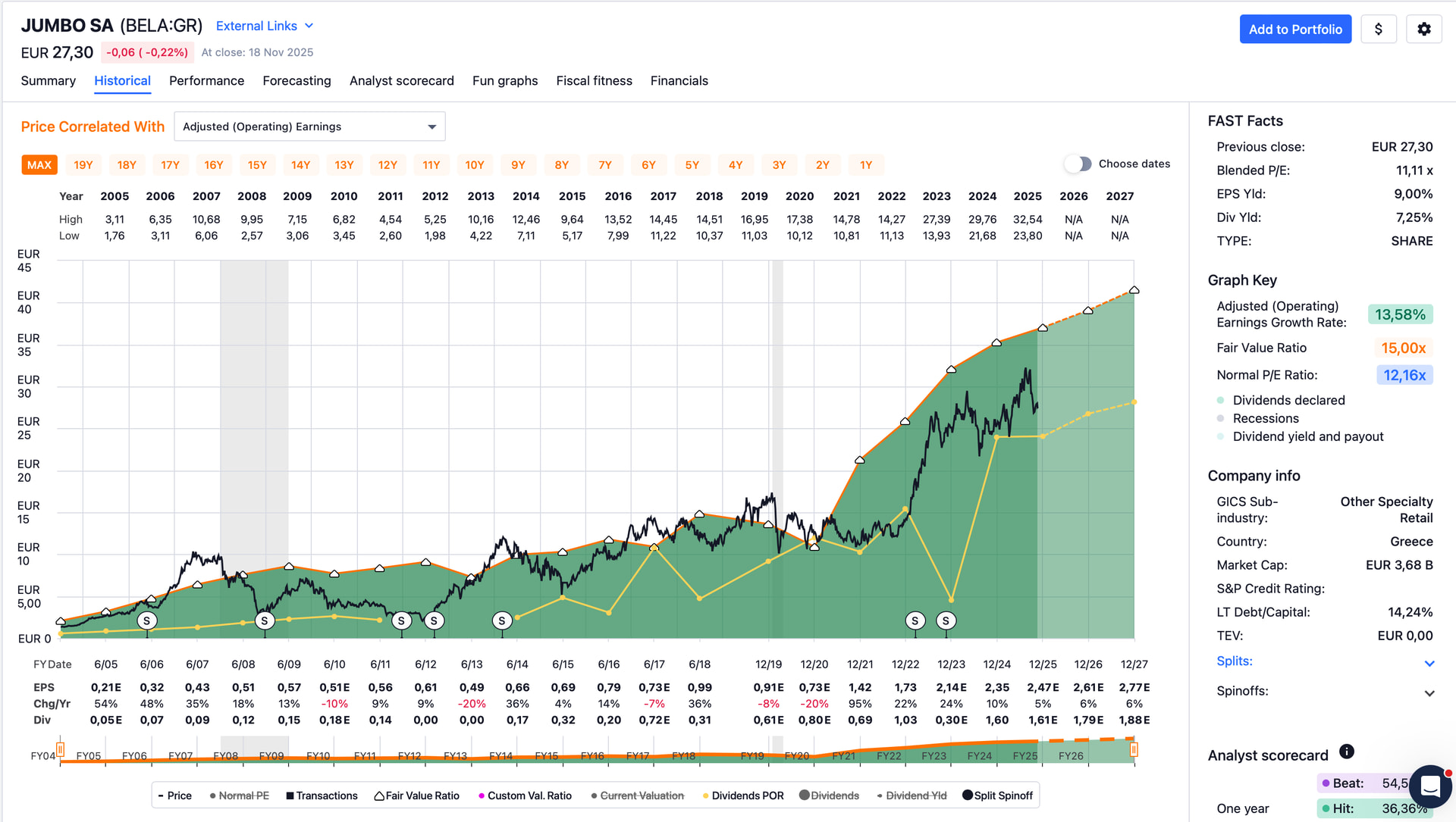 Anyway, looking (purely) at FASTgraphs I would have chosen the full view including the FAST Facts (column on the right) as well as the full 20 years of history.