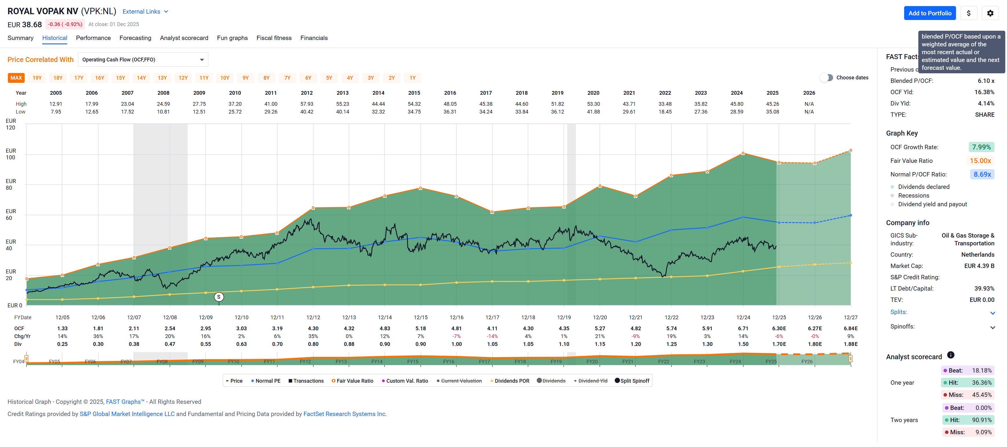 Blended[$] price per operating cash flow is at about 6x according to FASTgraphs. ![]()
