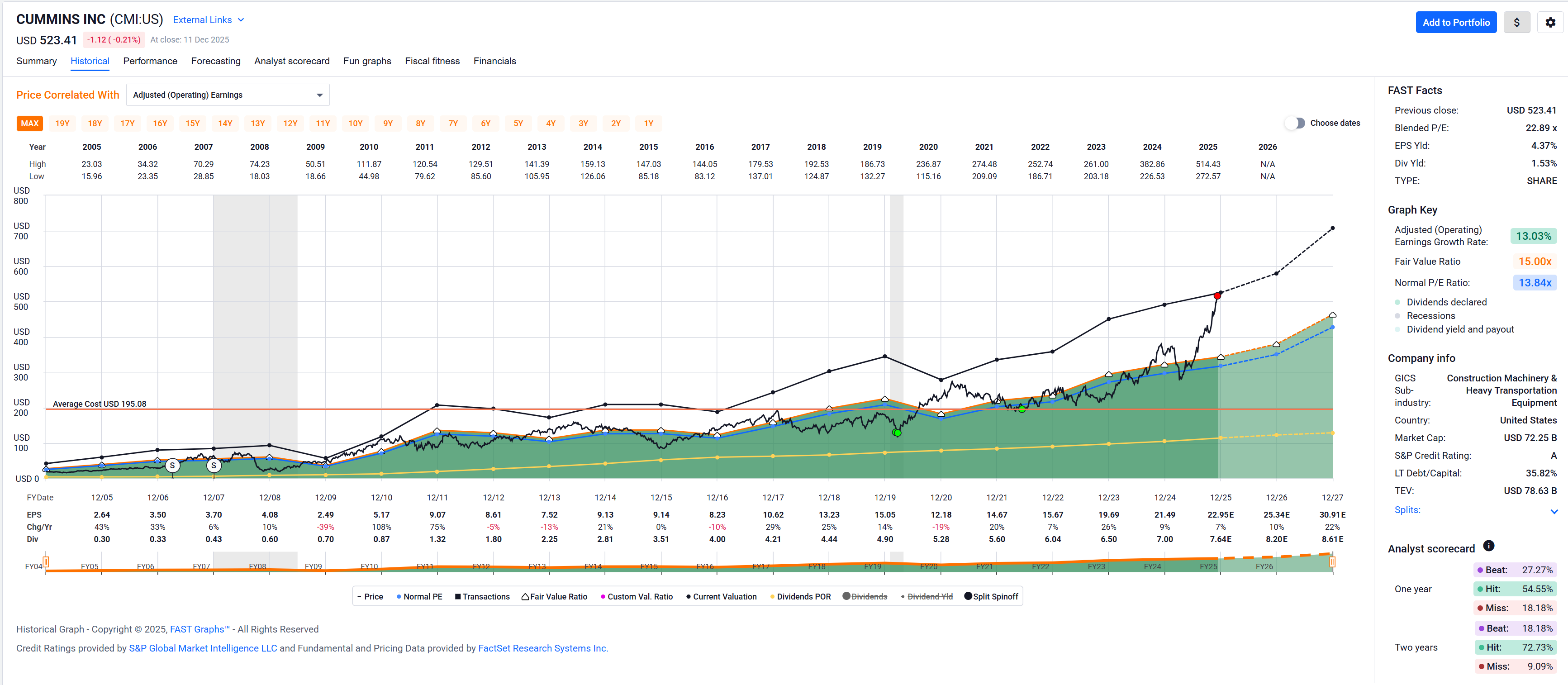 Finally sold a slice of CMI. Always hurts a bit cutting the flowers, but in the past 20 years Cummins has never been as highly valued (from a P/E perspective) as these days.