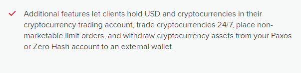 It seems, that the fees are a bit lower. For my part, with IBRK I feel safe enough to keep my BTC there. With any other non-bank I would transfer it to an own wallet.