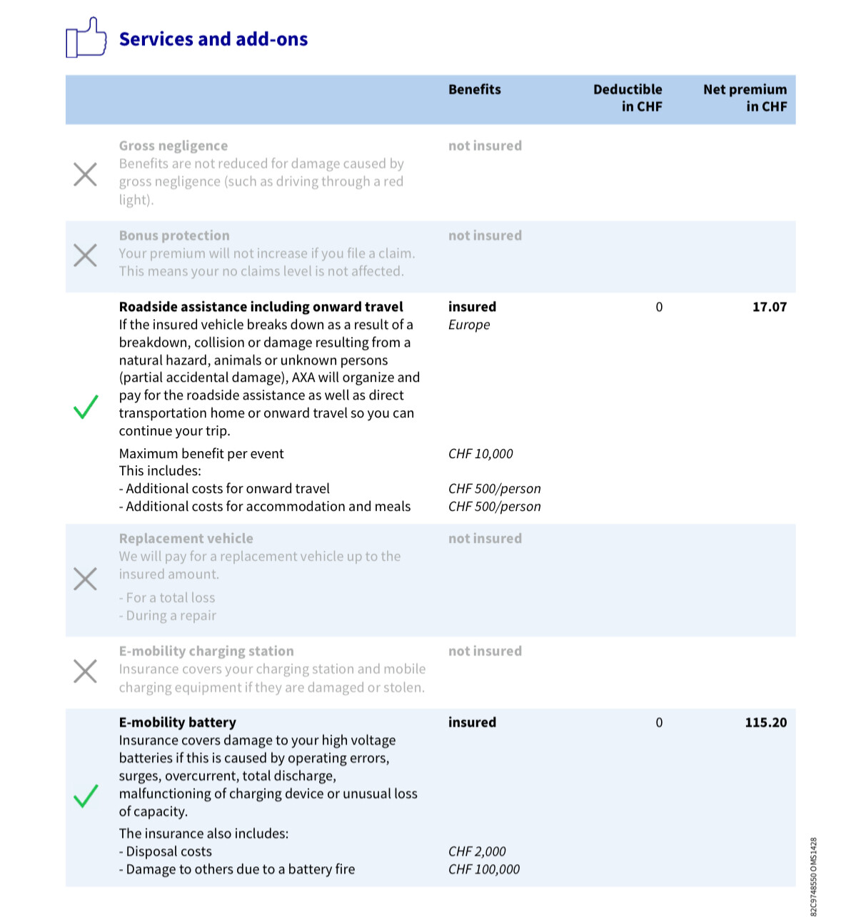 Also raising the deductible from 0 to 200 CHF in both partial casco as well as the liability portion has a rather positive effect by most companies on your premium going down.