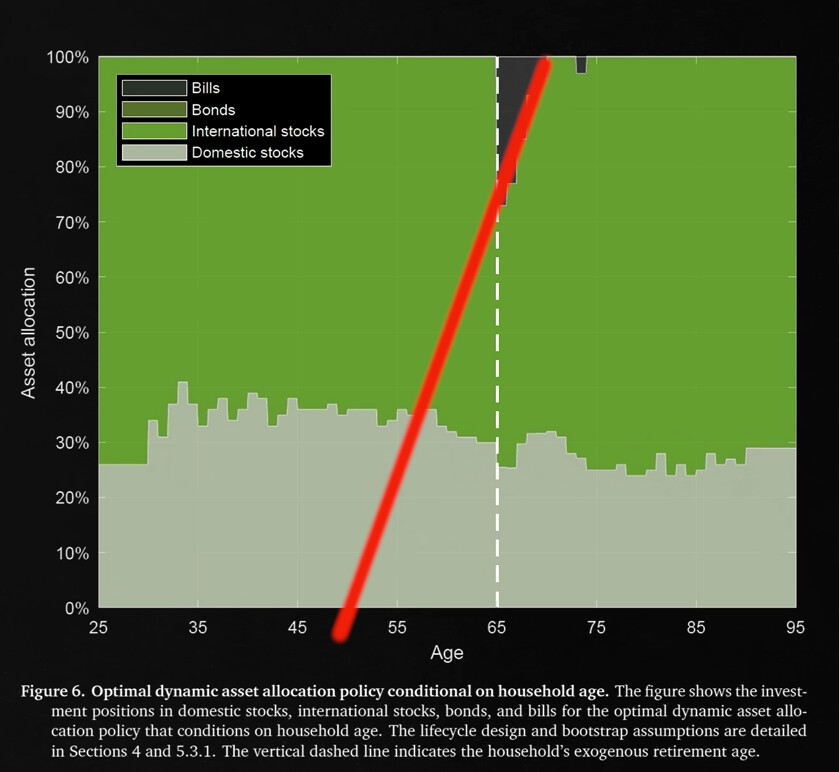 Jack Bogle, the father of Index investing, suggest that “age in bonds” is a good starting point to ponder on the gliding path toward retirement.