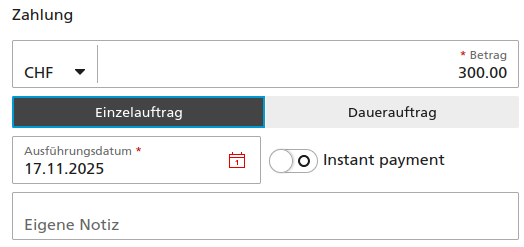 (If you do the same in the morning, the âInstant paymentâ switch doesnât automatically toggle when you set execution date to current day, and you get a free same-day transaction)