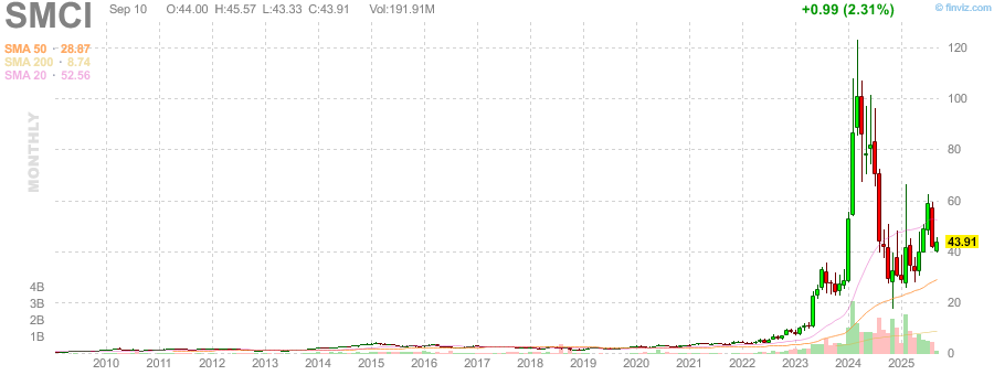Lucky I don’t have that problem… they all are too expensive for me. Or, in other words, I did not catch them on time with one exception: Supermicro. Bought at split-adjusted $4.32 back in 2022 when they were valued as “just another hardware screwdriver driver”. Then I bought some more the same year at $6.42, still cheap after a 50% price appreciation.