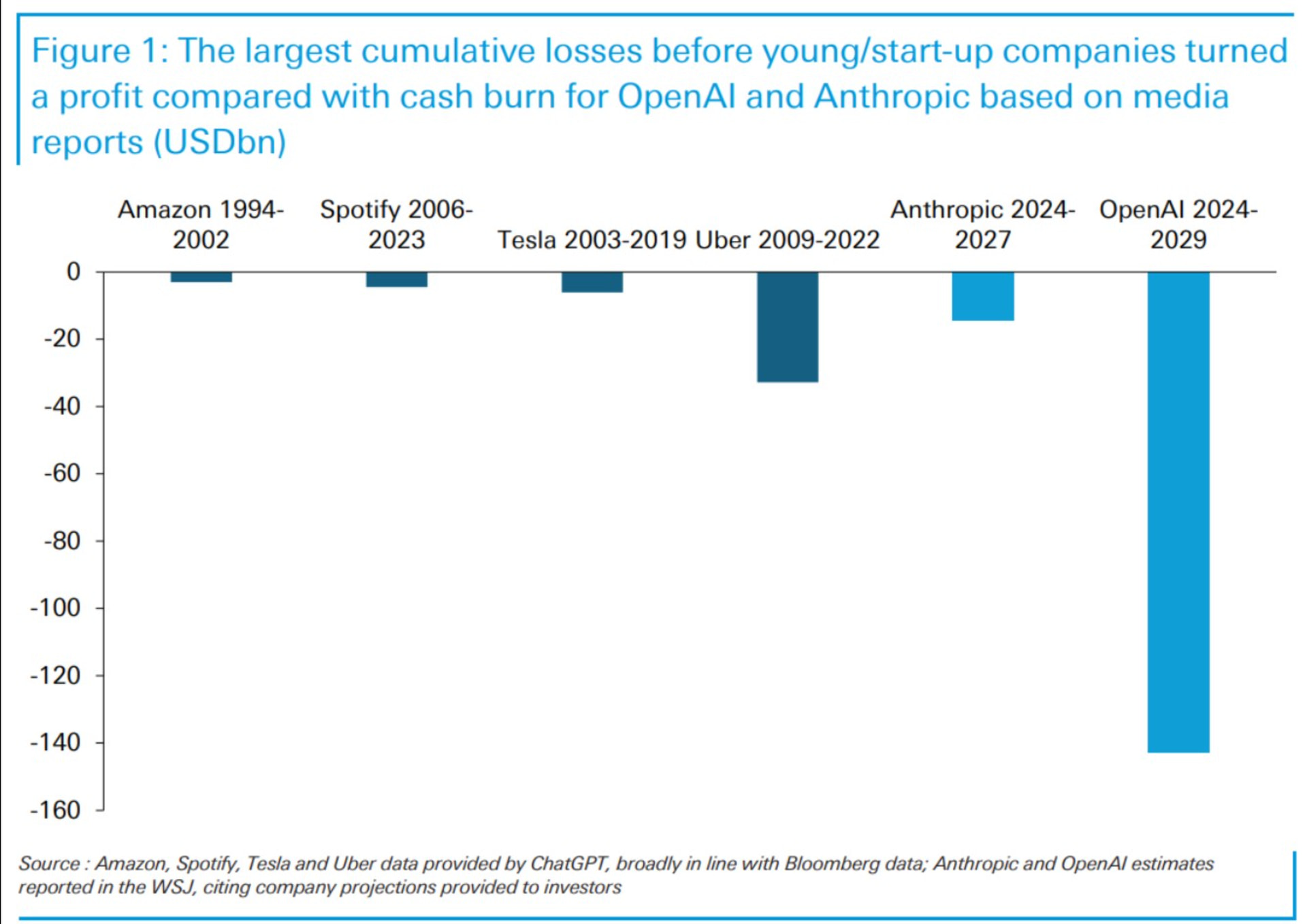 “The largest cumulative losses before young/start-up companies turned a profit compared with cash burn for OpenAI and Anthropic based on media reports”