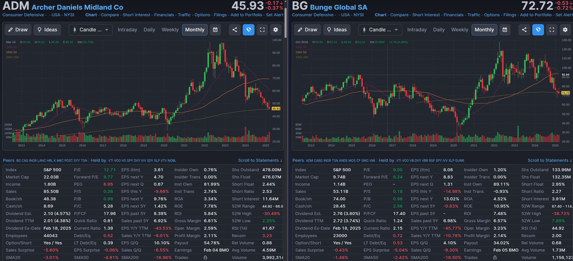 ADM and Bunge are both already hitting their 200 SMAs, could they fall another 30-50% to re-visit their covid lows?