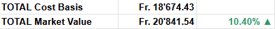 Finpension up 0.94% YTD, it might be a good time to put some money onto it, but I need the liquidity right now. The other 3A is basically SMI, so up 2%.