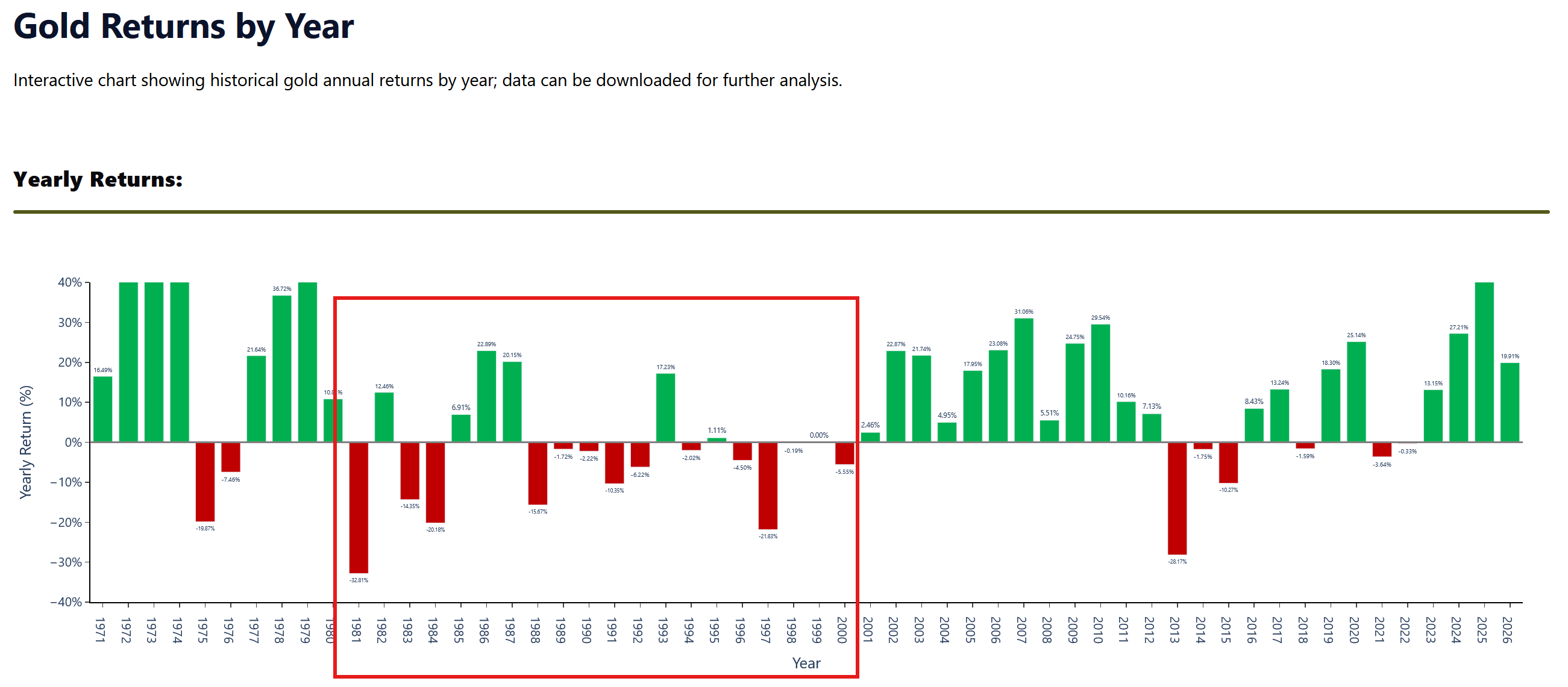 Gold was in deep red for 20 years where as S&P skyrocketed (didnât have time to put better graphs but the cumulative performance diff is huge)