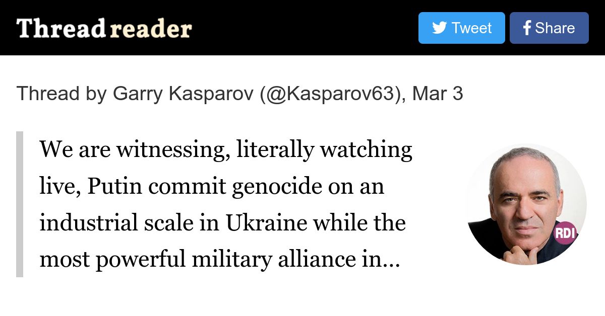 As a counter-statement, here’s a twitter thread from Garry Kasparov: