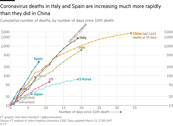 You mean it becomes wrong after severe measures are implemented (China) or countries do effective testing + quarantine (south Korea). If we’re lucky in a week or so Italy will stop doubling every 3 days.
