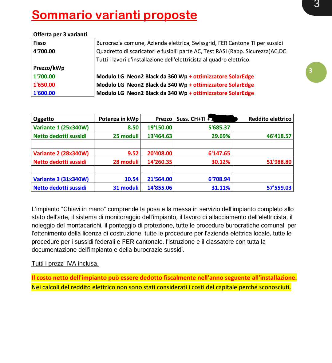 12.2 kWp, CHF 31’000.- total cost minus 4’000.- subidies = 27’000.- (incl. VAT, all fees, Sicherheitsnachweis, Pronovo registration, scaffolding etc.)