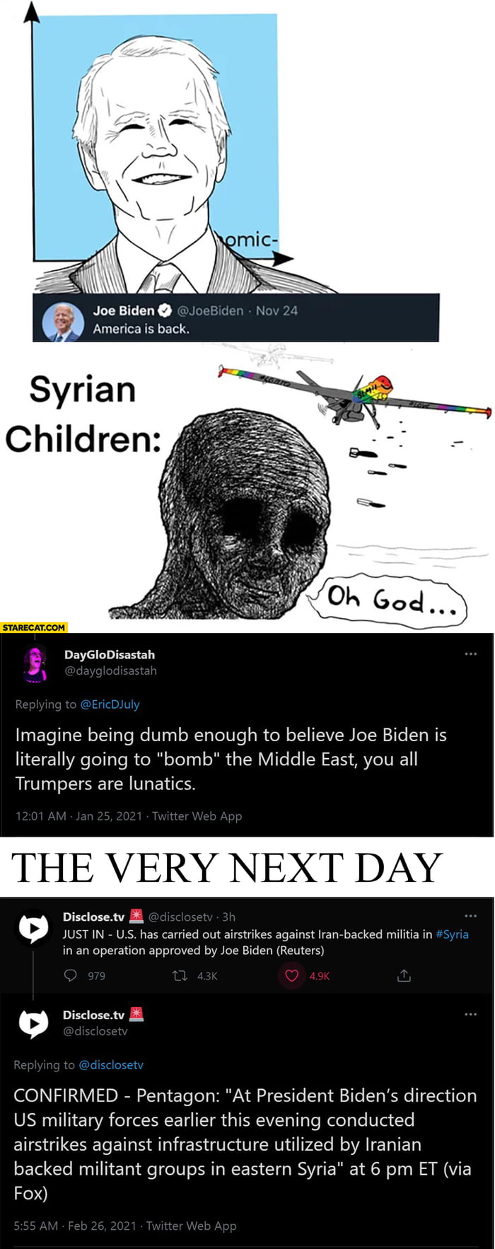 You also wrote “Just watch Biden, we will have another conflict in 2021”, can you elaborate on that? Any insider information? Should I short the sp500?