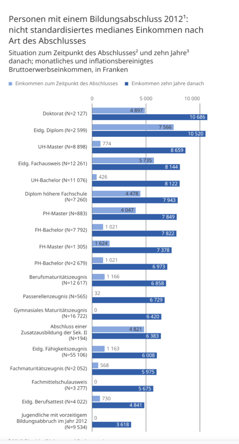 Don’t want to be pedantic and further digress, but isn’t it more like while studying? Which is why the proffesional degrees have an average income, PHD’s a lower one and university and FH pretty low, basically student jobs or internships.