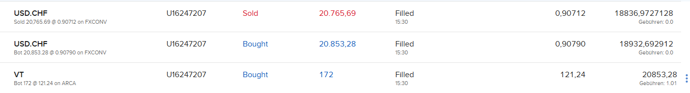 I created an account on IB and followed the mustachian epic guide to buy VT. So I converted CHF to USD to buy VT. After the trade was done, I noticed that everything was first converted agian back to CHF and then back to USD. This seems very strange. Is there a setting that needs to be changed?