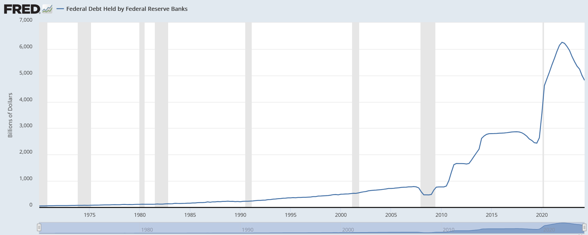 Source: Federal Debt Held by Federal Reserve Banks (FDHBFRBN) | FRED | St. Louis Fed