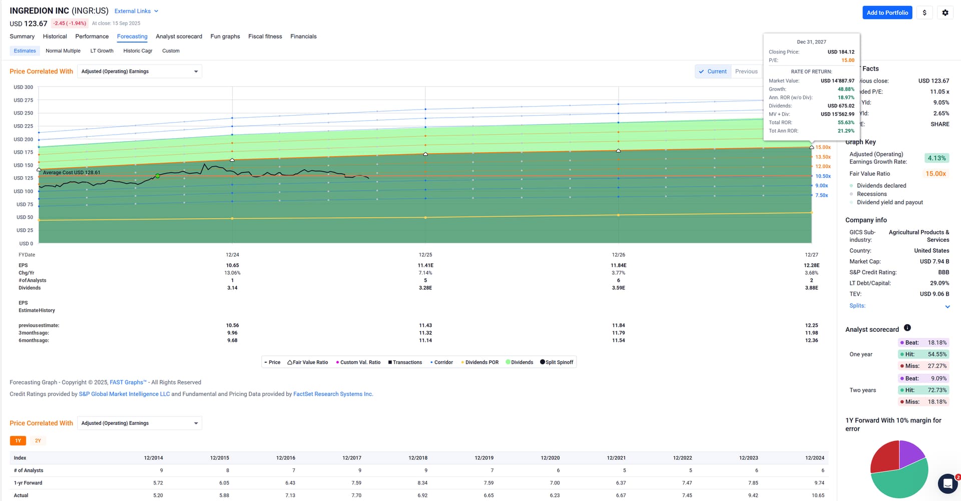 The income for INGR grew at a Compound Dividend Growth Rate of 5.55% over the past 5 years and 13.72% over the past 20 years.