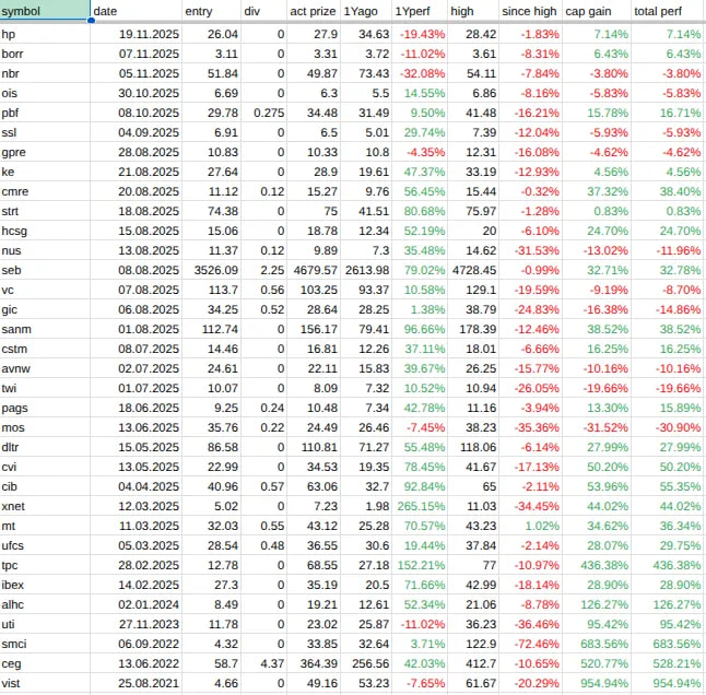 And the journey to oil continues. For my momentum strategy I bought me some Nabors Industries (NBR) today. Every analyst says there will be overproduction next year and prices will fall. But my captain makes me buy more oil stocks. Maybe the situation is already priced in.