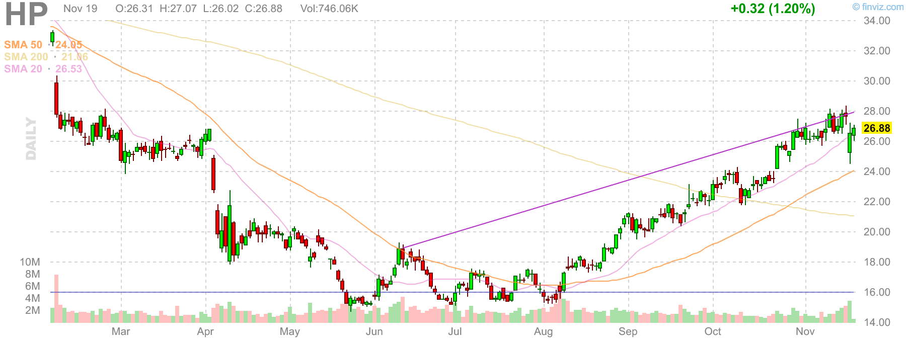 And on I go to be an oil sheik with yet another one. When will it stop? Bought myself some Helmerich & Payne today for my momentum strategy.