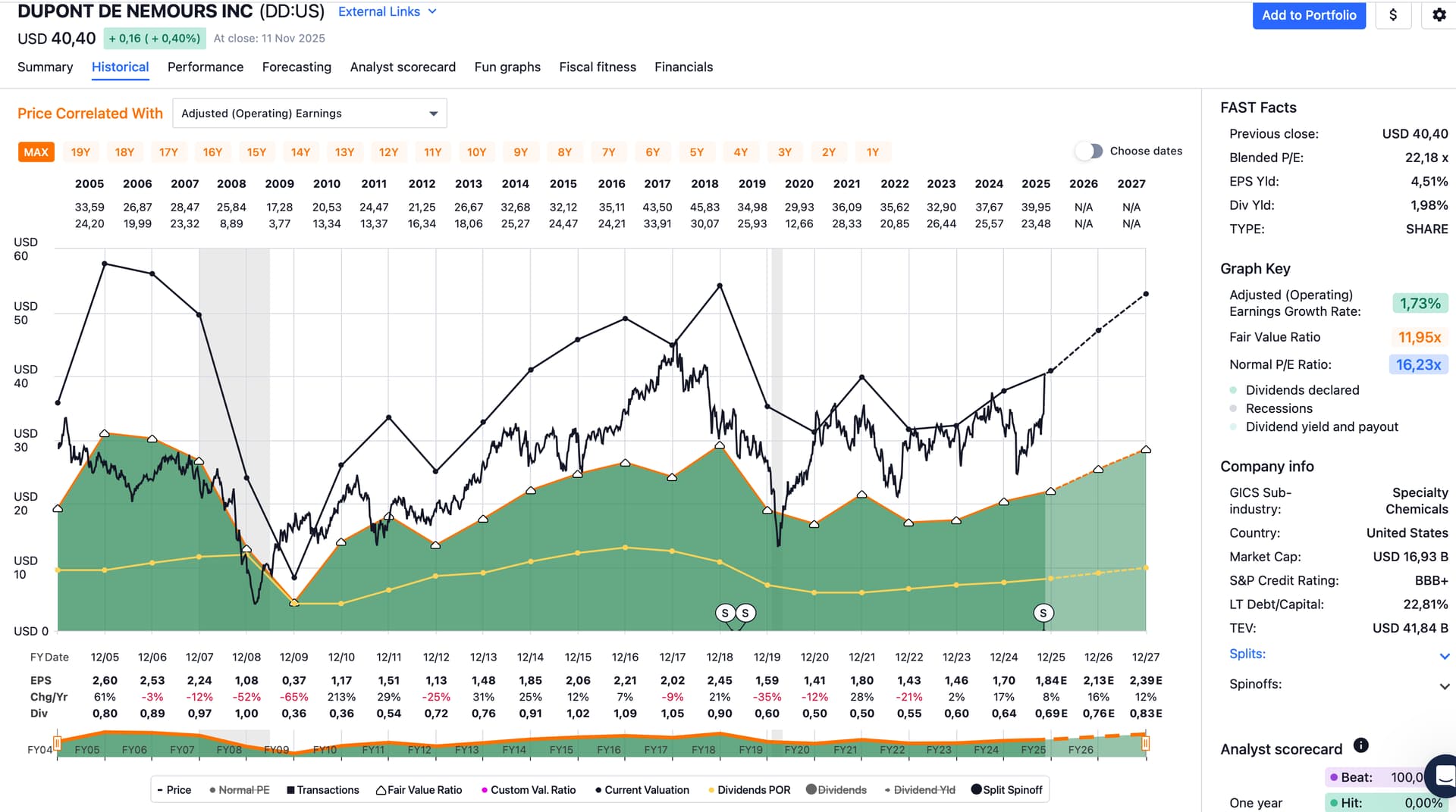 I’m curious how Du Pont will fare in your mechanical strategy. Looking at FASTgraphs Du Pont’s current valuation was almost always the top valuation for the company (except for a short stretch in mid 2009 to mid 2010).