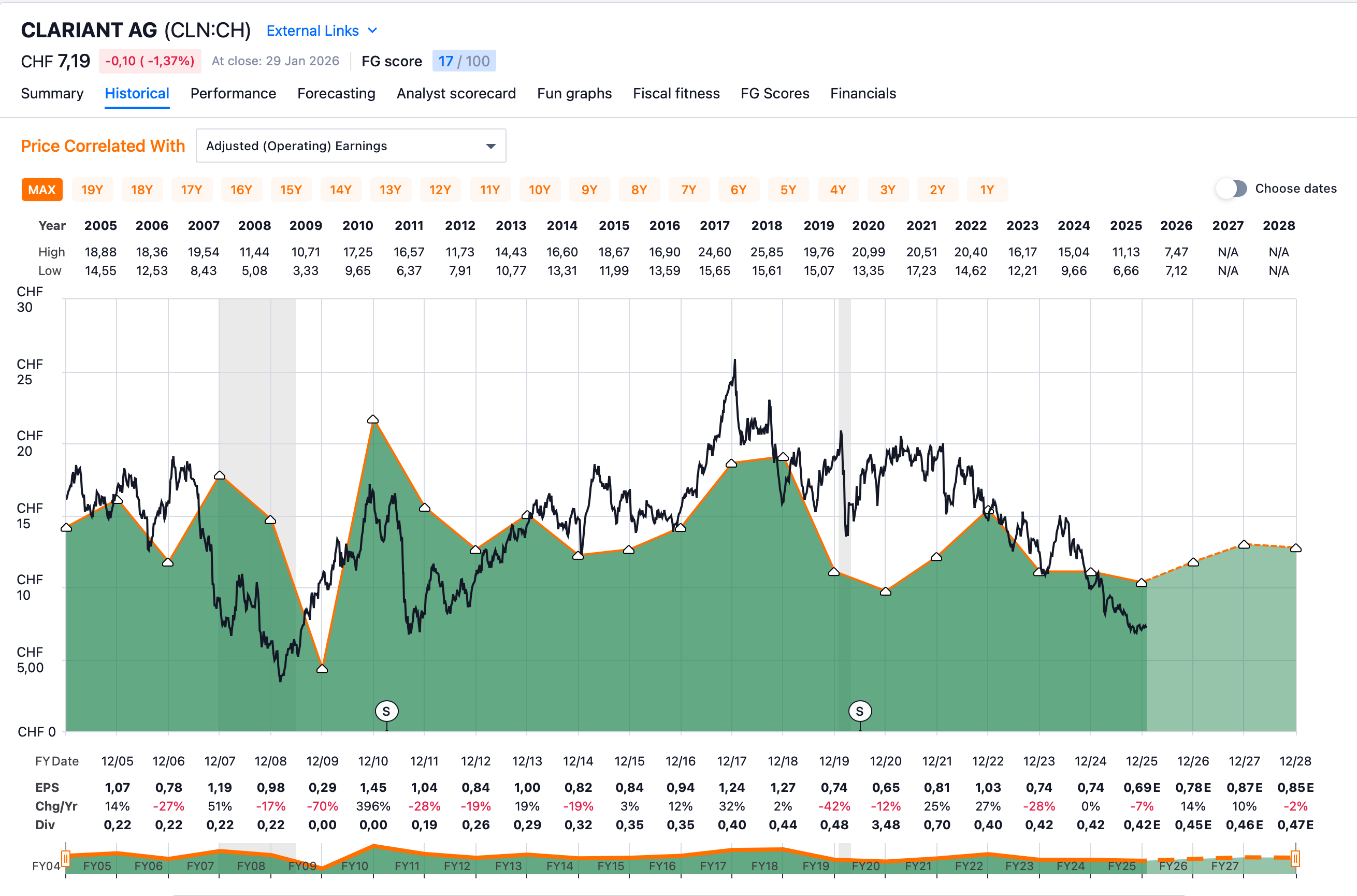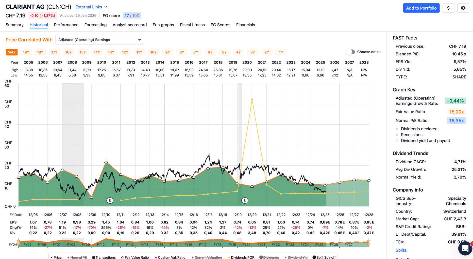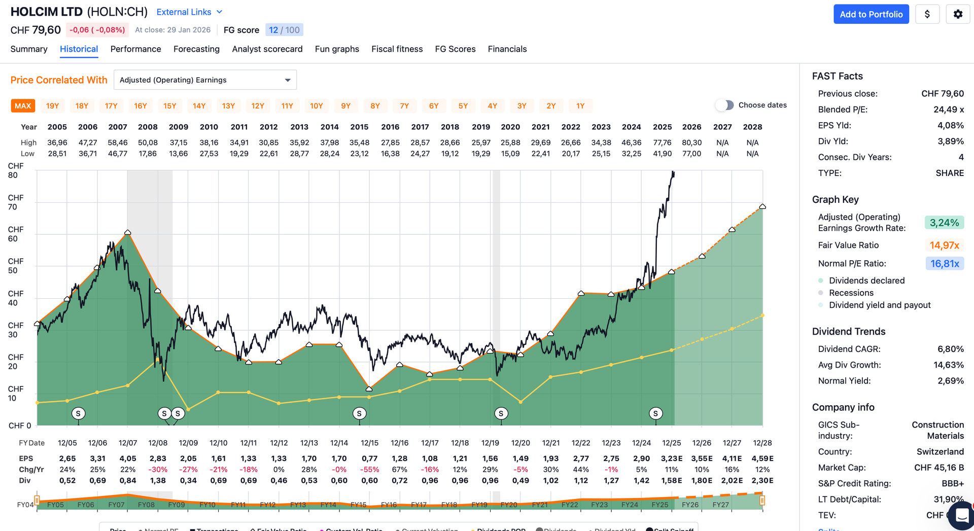 Historical earnings graph with dividend payout ratio: