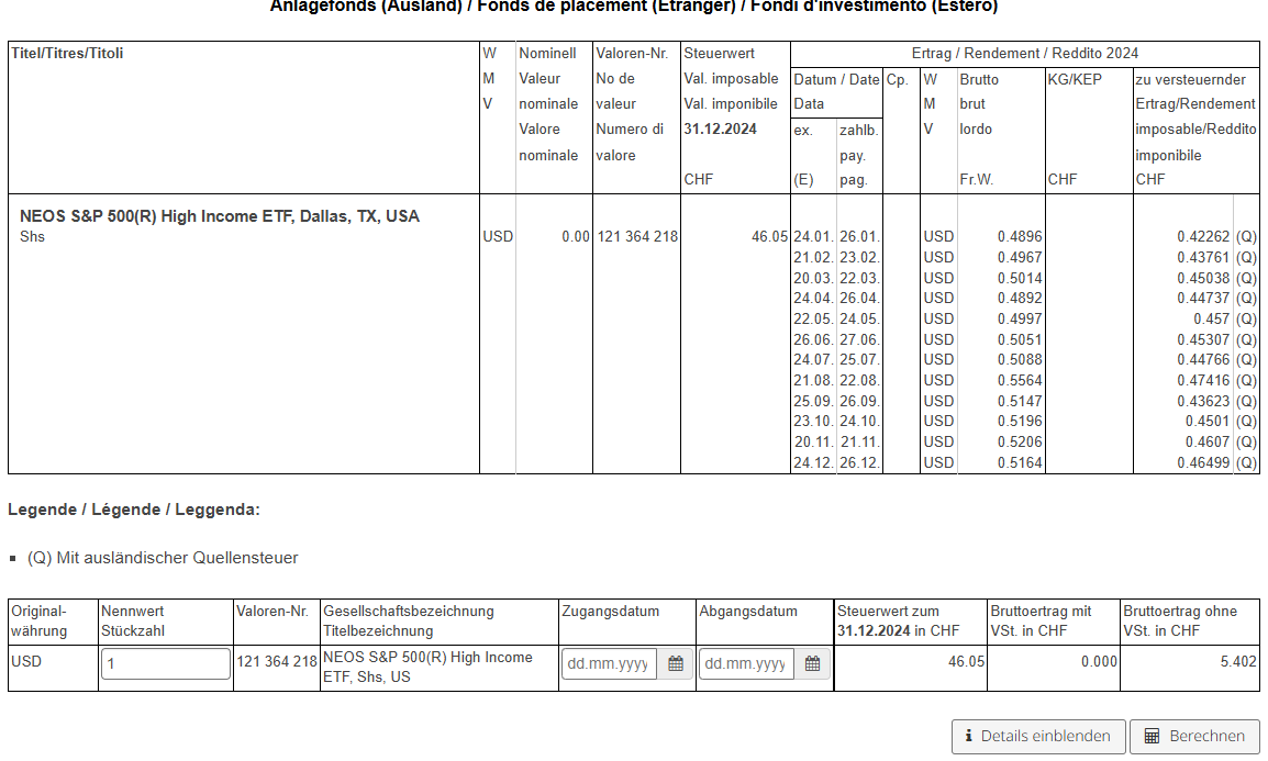 Capital gain distributions / §1256 option income at the fund level: For non-U.S. taxpayers, capital gains are generally not subject to U.S. taxation (exceptions include, for example, the 183-day rule). Therefore, there is typically no U.S. withholding tax on pure capital gain distributions. Return of Capital (RoC) is likewise not subject to U.S. withholding tax; in Switzerland, RoC normally reduces the cost basis. (Details may vary by canton; proper bookkeeping is required.)