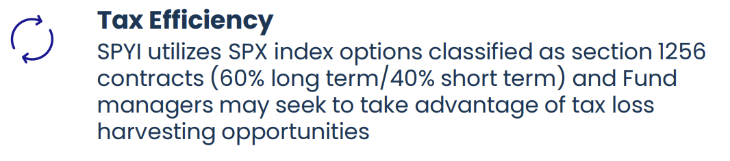 While the dividends of e.g. JEPI are ordinary dividends, SPYI uses another strategy:
