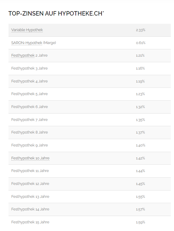 Normally I check on hypotheke.ch (10y = 1.42) and moneypark.ch (10y = 1.40) to see approximately what kind of 10 year rates are “possible”