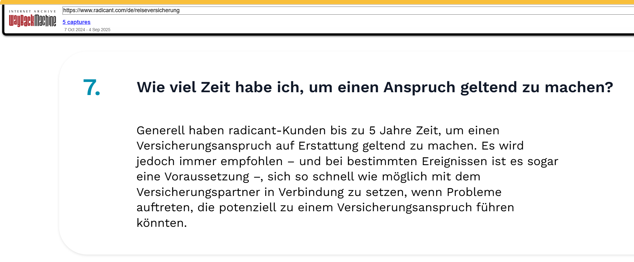 They could say: from now all the payments made using Radicant aren’t covered by the Travel Insurance. Fair.
