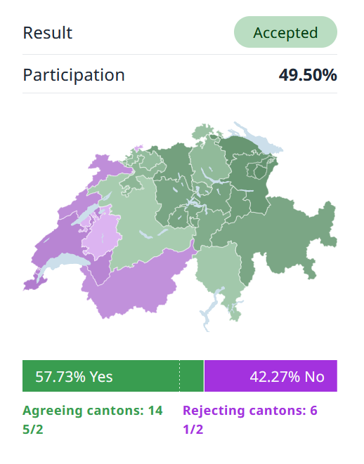 Looks like it’s decided 58% so far (as expected, but not that clearly) for the removal. Abstimmungen live - Hochrechnung: Hochspannung bei E-ID, Eigenmietwert abgeschafft - News - SRF
