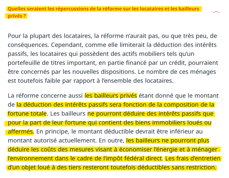 Exactly as I said, rich retired people with no debt and high imputed rental value will profit. No real estate owner in Zurich with no or low debt is poor, that is nonsense with the current real estate bubble. However, rich owners with no debt are the only people profiting from the change. At cost of everybody else…