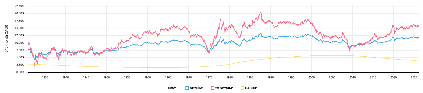 45 year rolling CAGR was chosen to keep the great depression visible