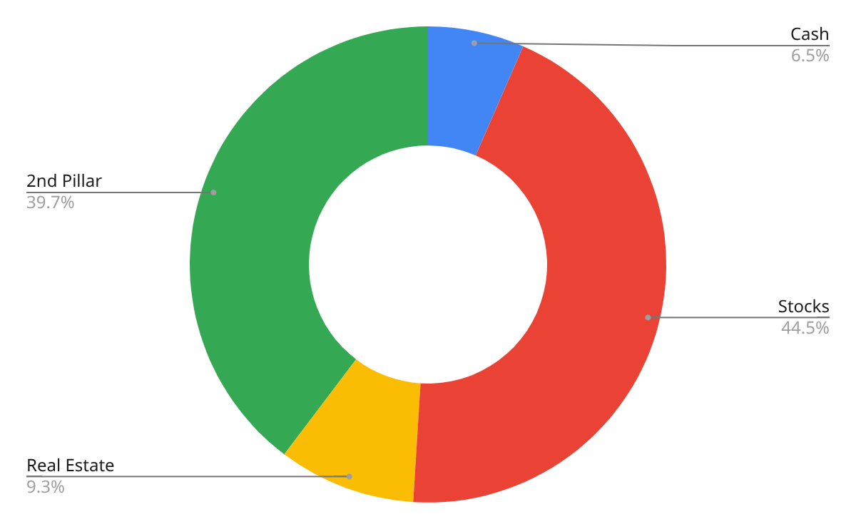 The equity share went down from 45.6% to 44.5%, despite my ETF portfolio hitting an All Time High as well (CHF 1.26M, IRR 10.3%). Thanks to abandoning my options trading I have some dry powder to invest going forward.