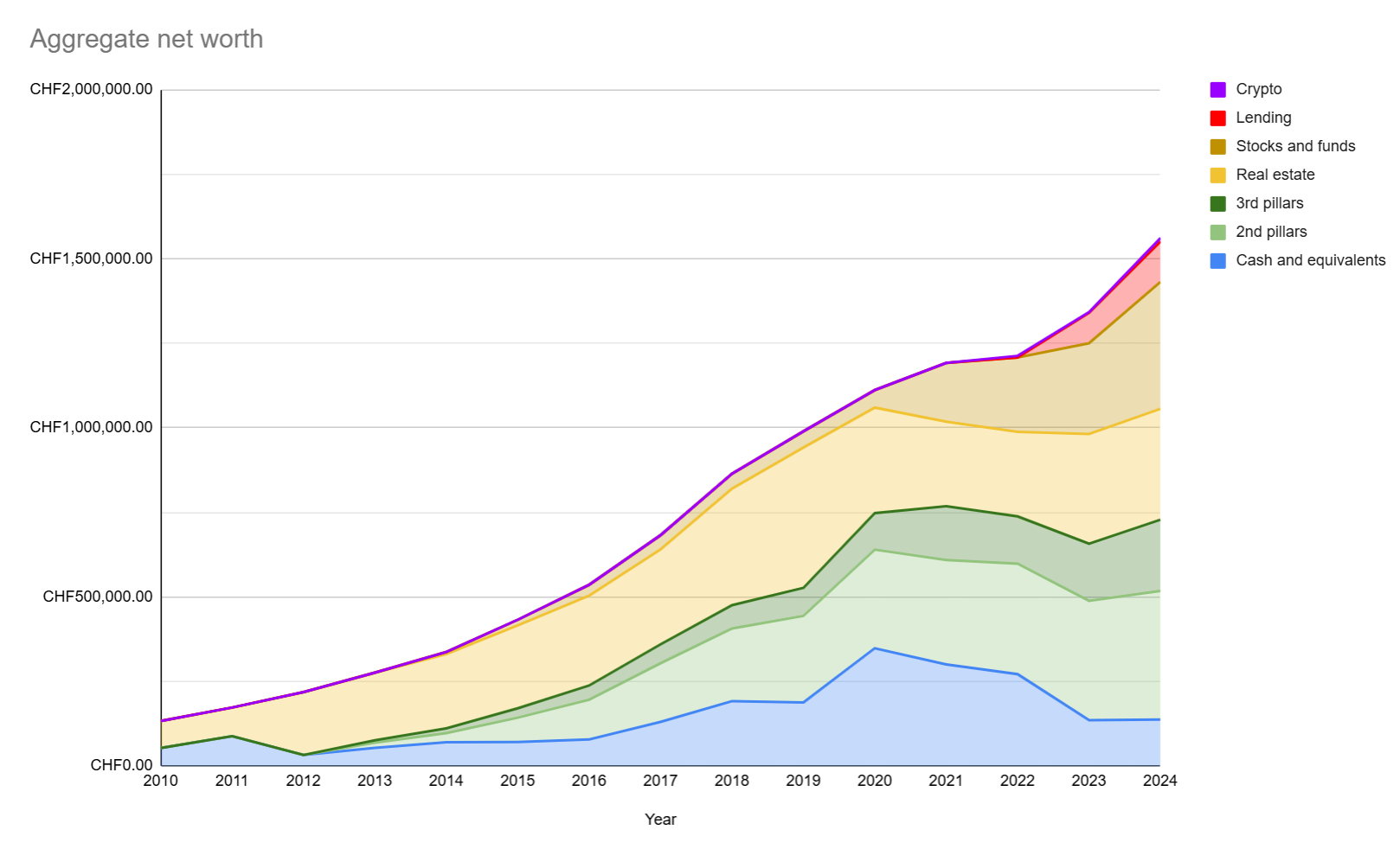 Net worth on 31 December 2024 is CHF 2.6M (up 14.1%) and at a new All Time High.
