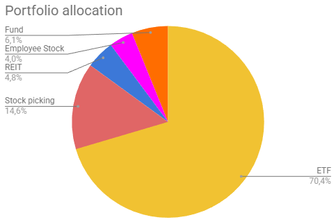 Still with too much cash on the side and too much stock picking (underperforming the ETF section.)